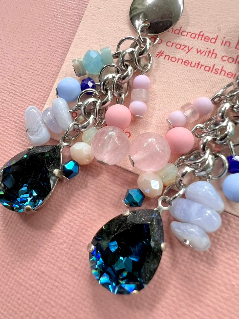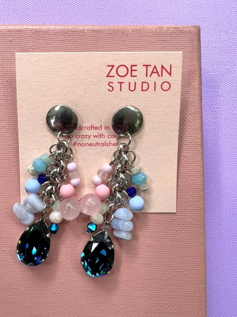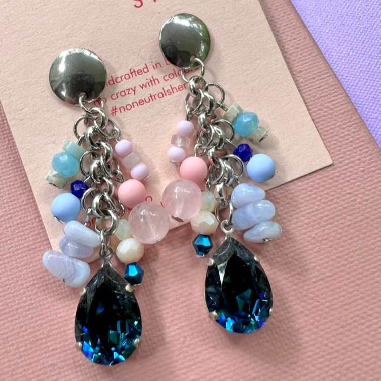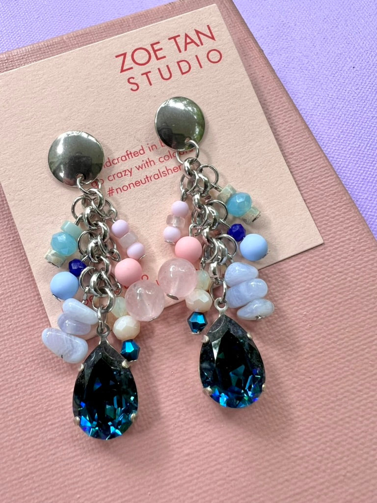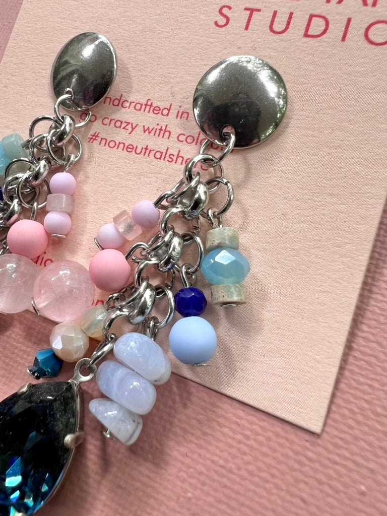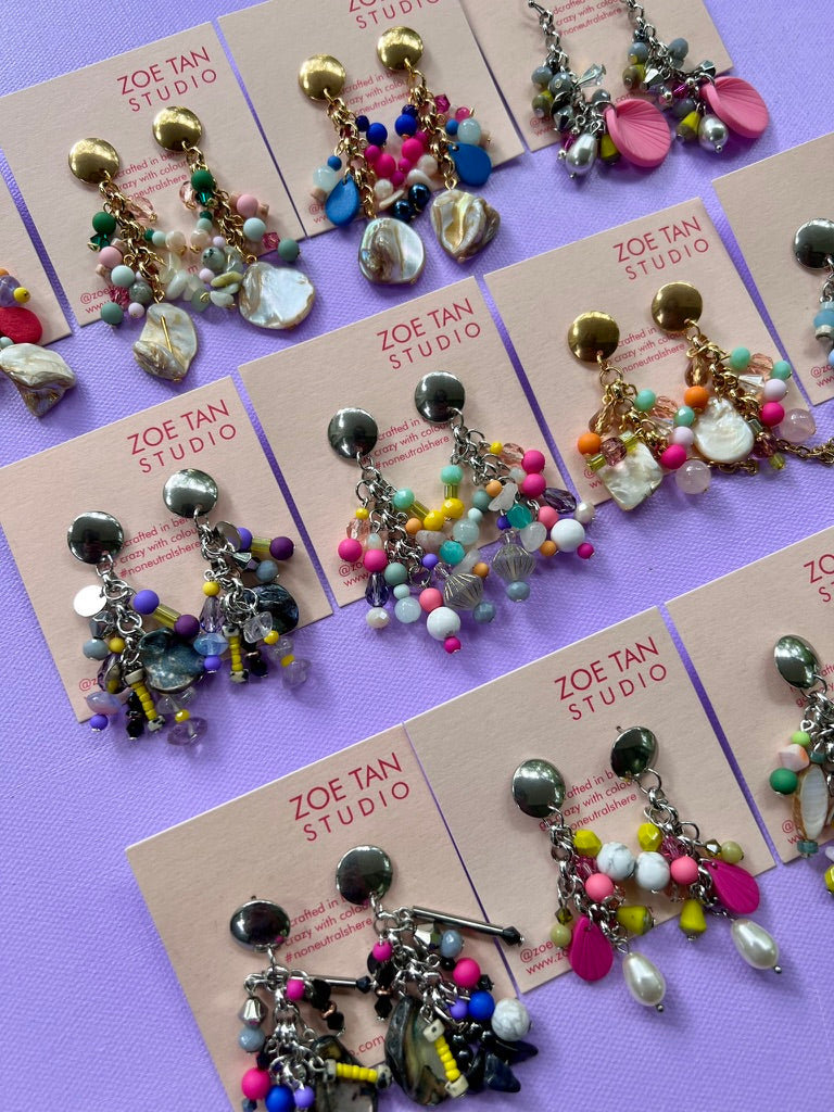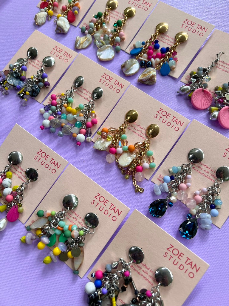 Unleash your inner risk-taker with our COU cluster beads earrings! Each earring features a colourful cluster of eclectic mixed beads, which range from crystal, semi-precious gem, glass, to acrylic and salvaged beads. There is no way these super-fun COU cluster earrings that are pure spring vibes won't put a smile on your face.